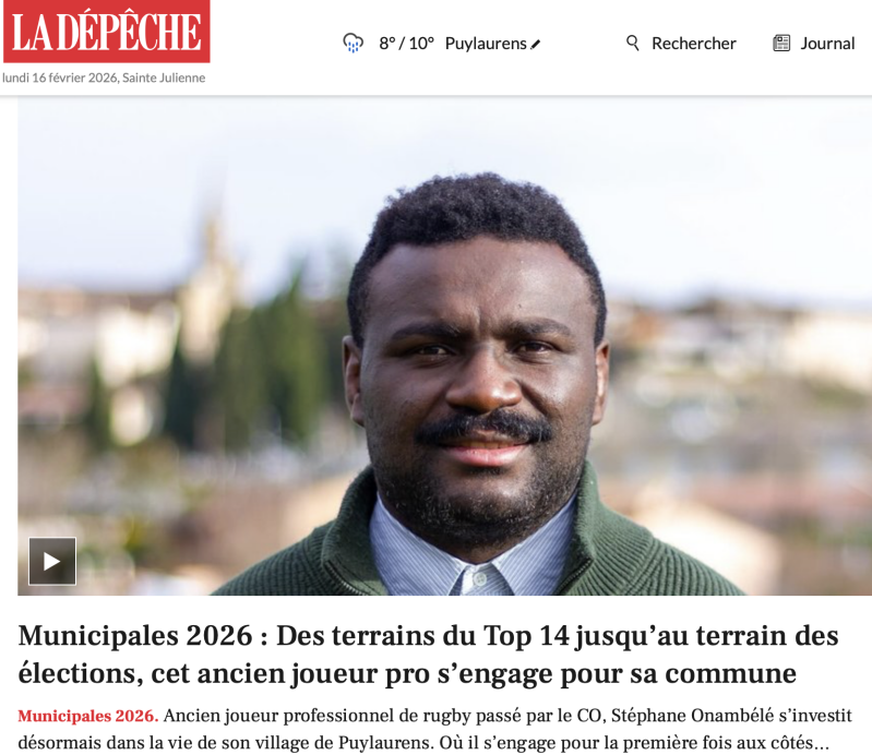 Ancien joueur professionnel de rugby passé par le CO, Stéphane Onambélé s’investit désormais dans la vie de son village de Puylaurens où il s’engage pour la première fois aux côtés de Géraldine Rouanet, tête de liste "Objectif Puylaurens".